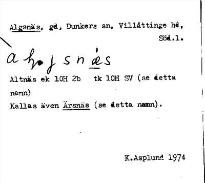 Information om ortnamnet Algsnäs