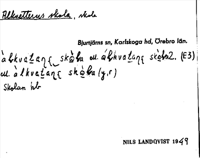 Information om ortnamnet Alkvetterns skola