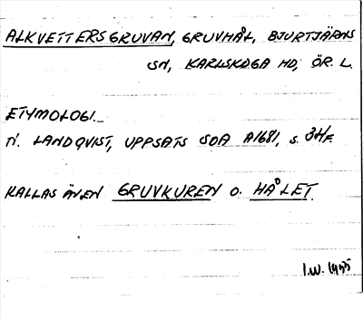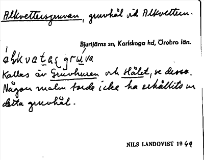 Information om ortnamnet Alkvettersgruvan