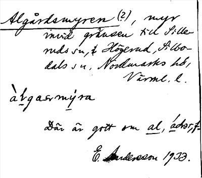 Information om ortnamnet Algårdsmyren
