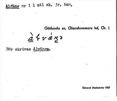 Information om ortnamnet Alfäng