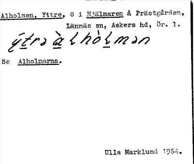 Information om ortnamnet Alholmen, Yttre