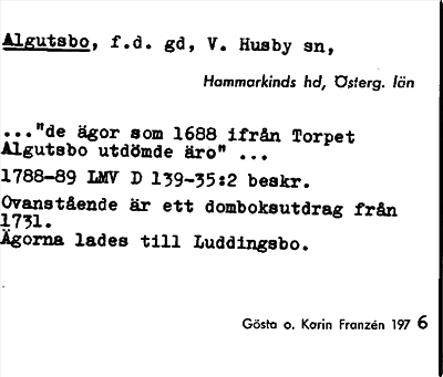 Information om ortnamnet Algutsbo