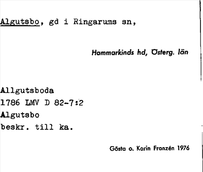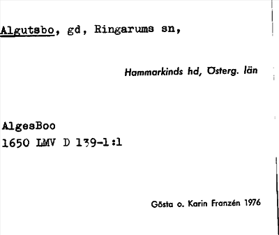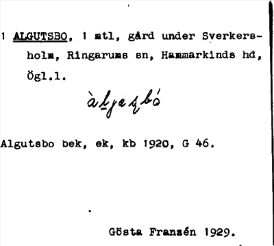 Information om ortnamnet Algutsbo