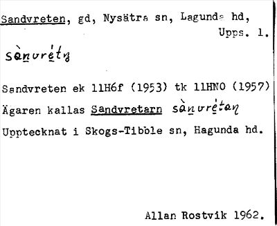 Information om ortnamnet Sandvreten