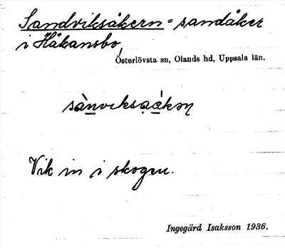 Information om ortnamnet Sandviksåkern