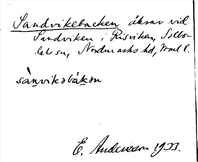 Information om arkivposten Sandvikebacken
