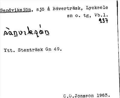 Information om arkivposten Sandviksjön