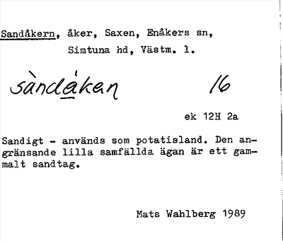 Information om ortnamnet Sandåkern