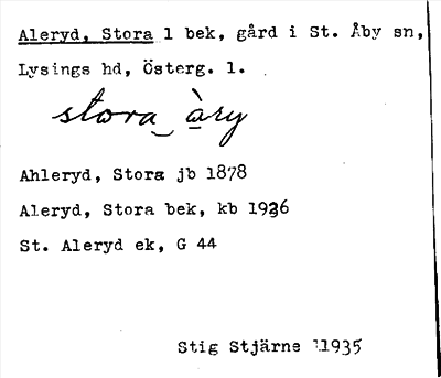 Information om ortnamnet Aleryd, Stora