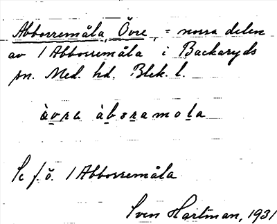 Backaryds sn, Medelstads hd, Blekinge län, Blekinge