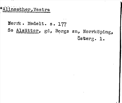 Information om ortnamnet Alinsæther, Vestra, Se Alsätter