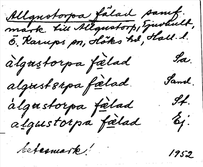 Information om ortnamnet Allgustorpa fälad