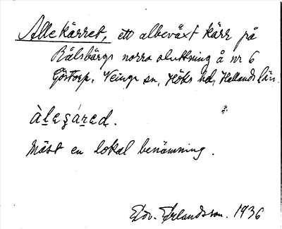 Information om ortnamnet Allekärret