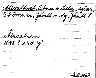 Information om ortnamnet Allvattnet, Stora o. Lilla