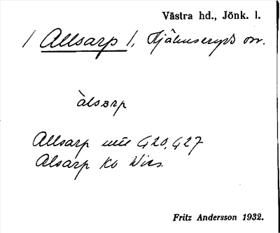 Information om ortnamnet Allsarp