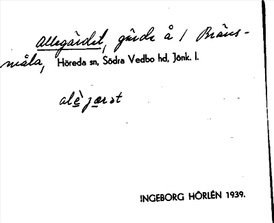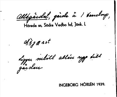 Information om ortnamnet Allégärdet