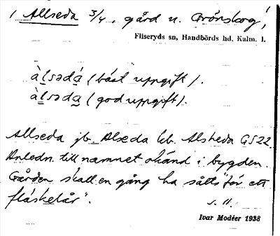 Information om ortnamnet Allseda