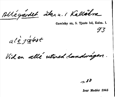 Information om ortnamnet Allégärdet