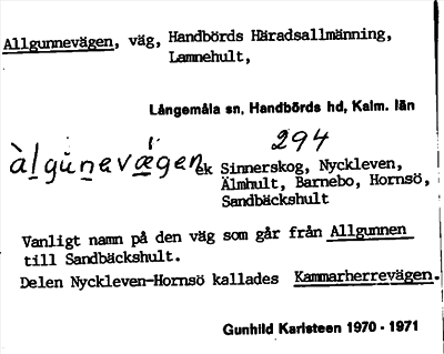 Information om ortnamnet Allgunnevägen
