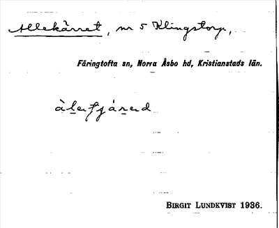 Information om ortnamnet Allekärret