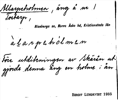 Information om ortnamnet Allarpeholmen