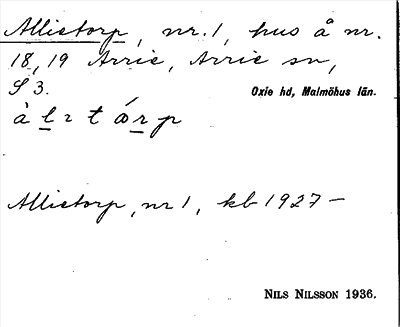 Information om ortnamnet Allietorp