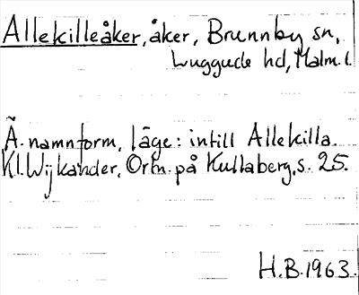 Information om ortnamnet Allekille åker