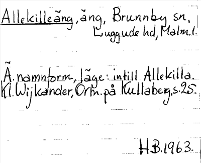 Information om ortnamnet Allekille äng