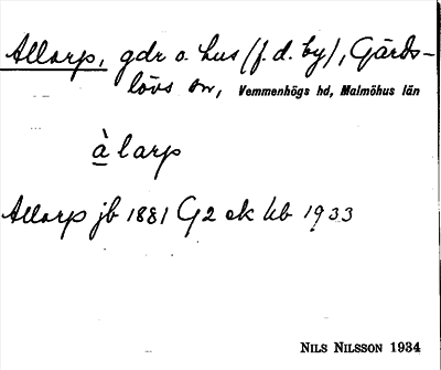 Information om ortnamnet Allarp