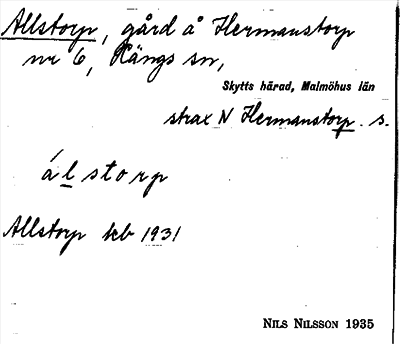 Information om ortnamnet Allstorp