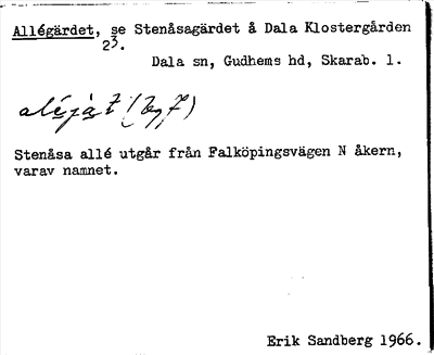 Information om ortnamnet Allégärdet