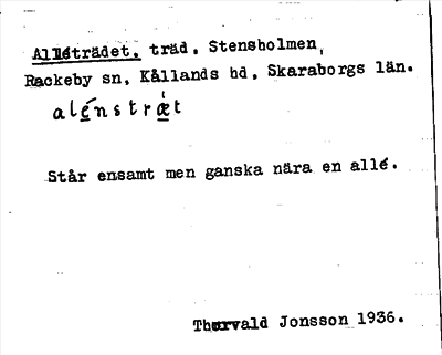 Information om ortnamnet Alléträdet