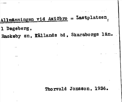 Information om ortnamnet Allmänningen vid Axiöbro = Lastplatsen