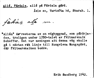 Information om ortnamnet Allé, Fårdals