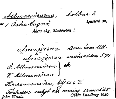 Information om ortnamnet Allmarsörarna