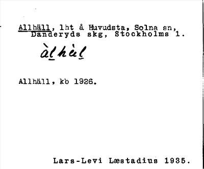 Information om ortnamnet Allhäll