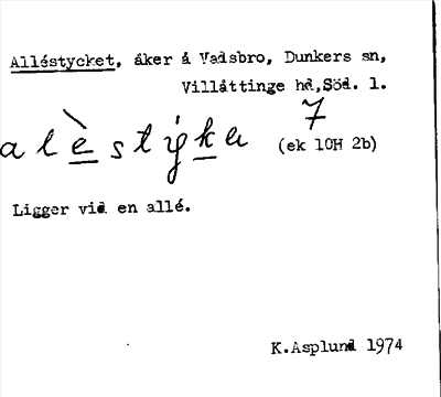 Information om ortnamnet Alléstycket