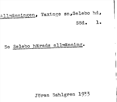 Taxinge sn, Selebo hd, Södermanlands län, Södermanland