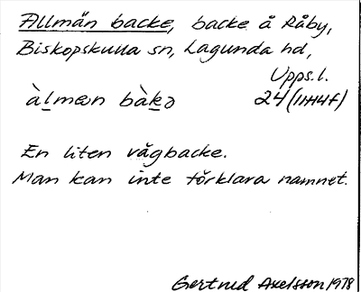 Information om ortnamnet Allmän backe