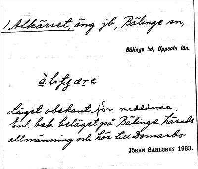 Information om ortnamnet Alkärret