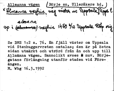 Information om Allmänna vägen