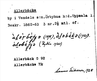Information om ortnamnet Allerbäcke