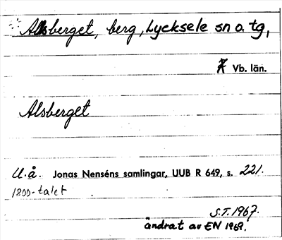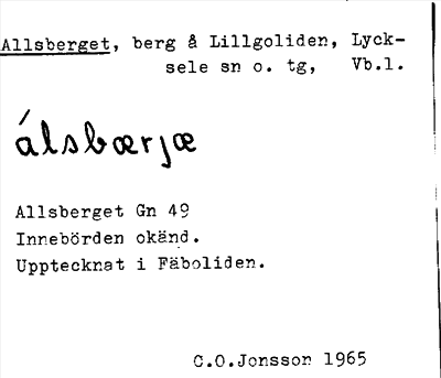 Information om ortnamnet Allsberget