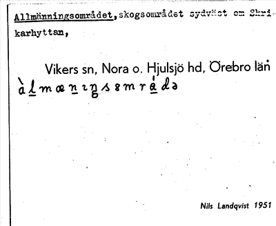 Vikers sn, Nora och Hjulsjö hd, Örebro län, Västmanland