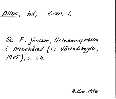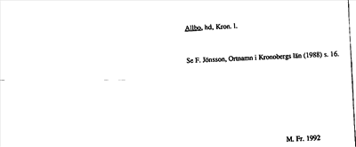 Information om ortnamnet Allbo