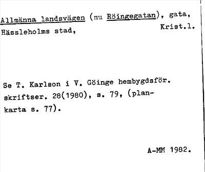 Information om ortnamnet Allmänna landsvägen nu Röingegatan