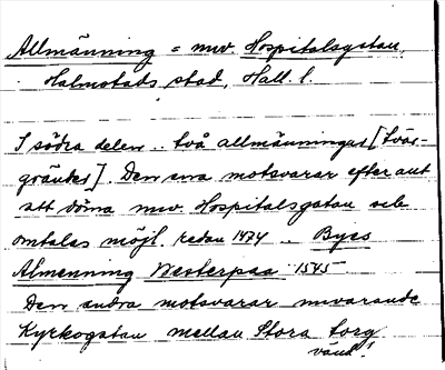 Information om ortnamnet Allmänning = nuv. Hospitalsgatan
