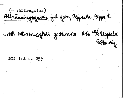 Information om Allmänningsgatan = Vårfrugatan