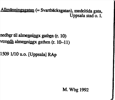 Information om ortnamnet Allmänningsgatan =Svartbäcksgatan